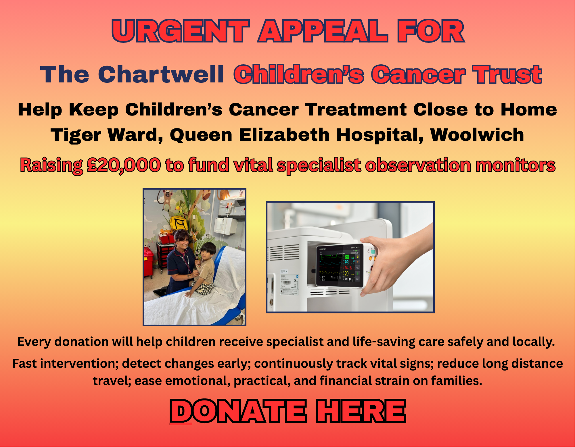 All proceeds help us reach our fundraising targets allowing us to provide direct support for oncology patients and families, as well as much needed enhancements to NHS facilities and equipment.